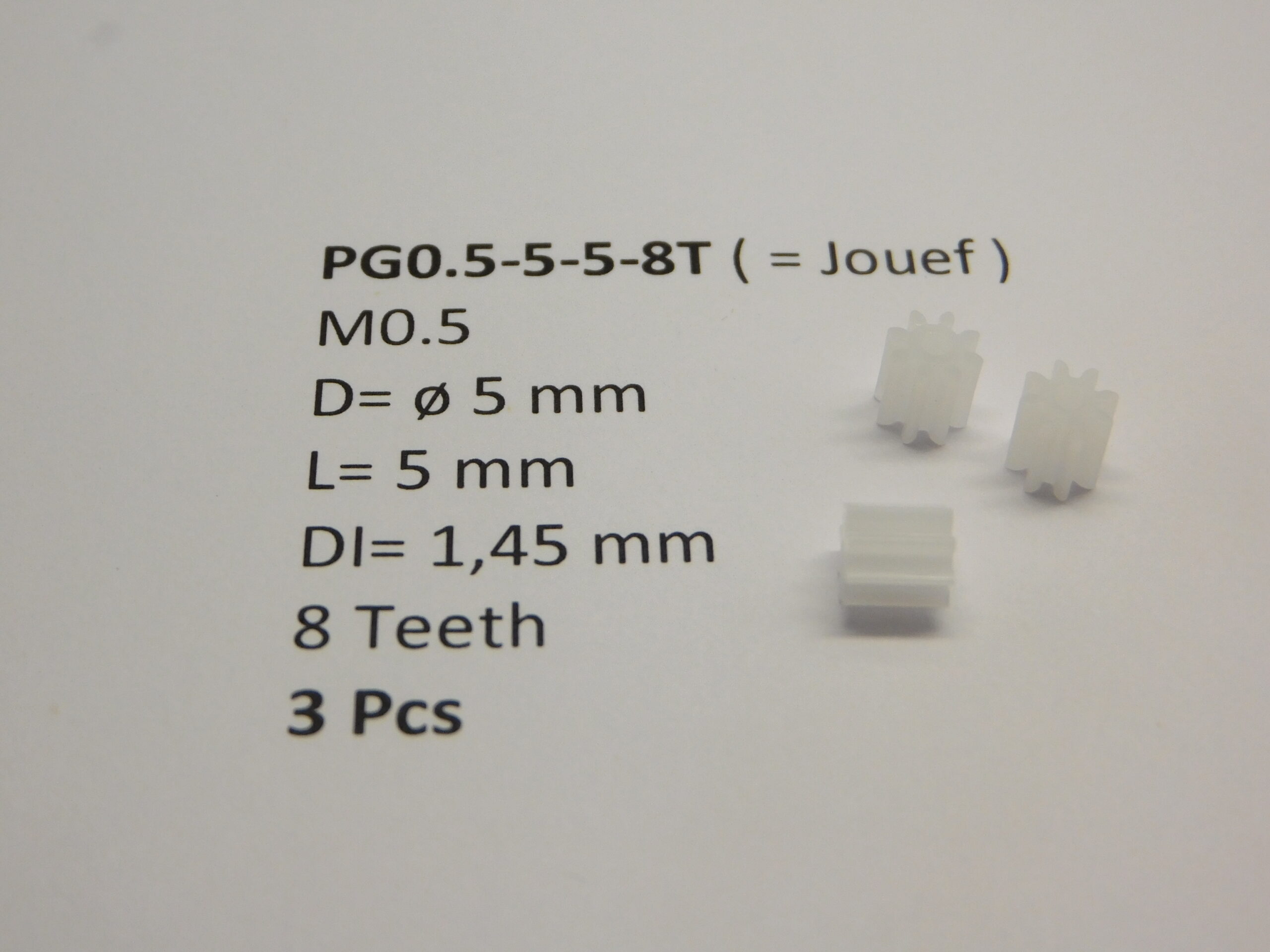 PG0.5-5-5-8T M0.5 D=?5 L=5 DI=1.45 mm 8 Teeth (3 Pcs)